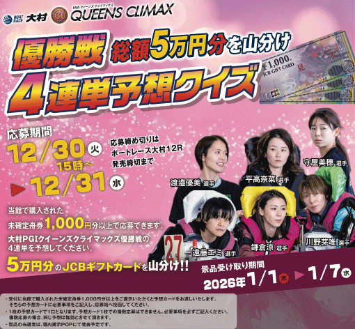 12月20日(土)21日(日)開催! 総額10万円分の舟券購入券が当たる🎁
