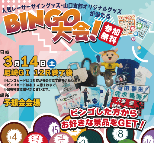 11/30(日)人気レーサーサイン入りグッズ等が当たるBINGO大会開催🎁