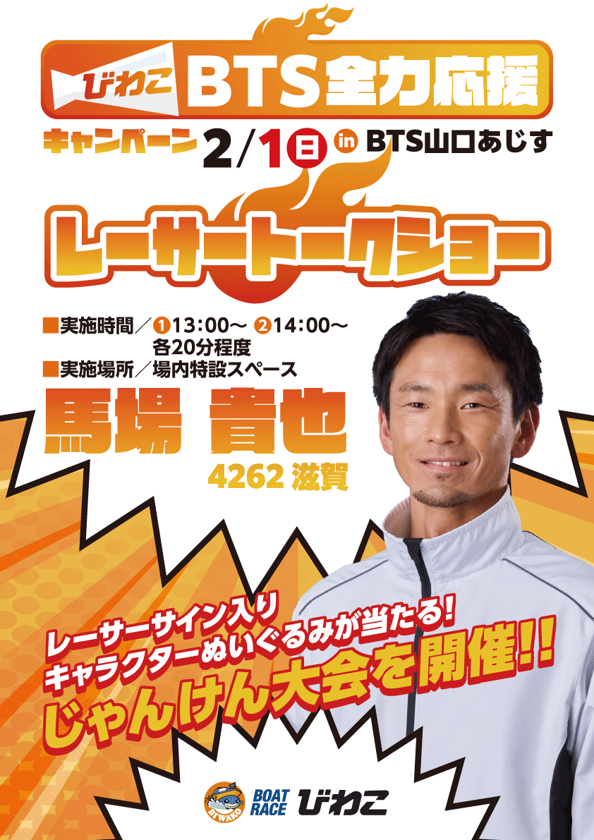 ボートレースチケットショップ山口あじすに馬場貴也選手がやってくる!!!!